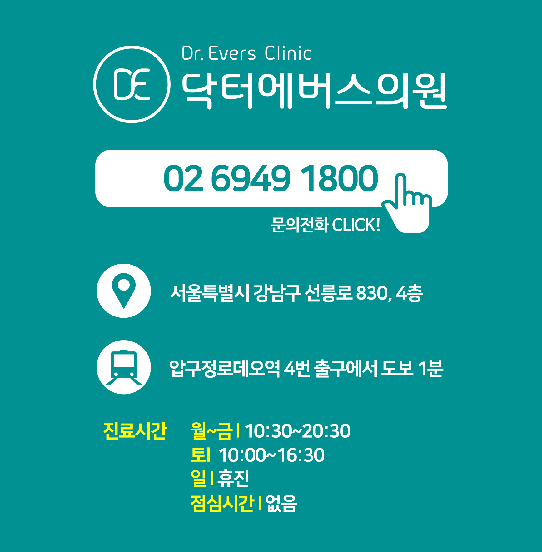 [ 진료시간 ]월~금 : 오전 10:30 - 오후 08:30토 : 오전 10:00 - 오후 04:30 일 : 휴진*점심시간 없음